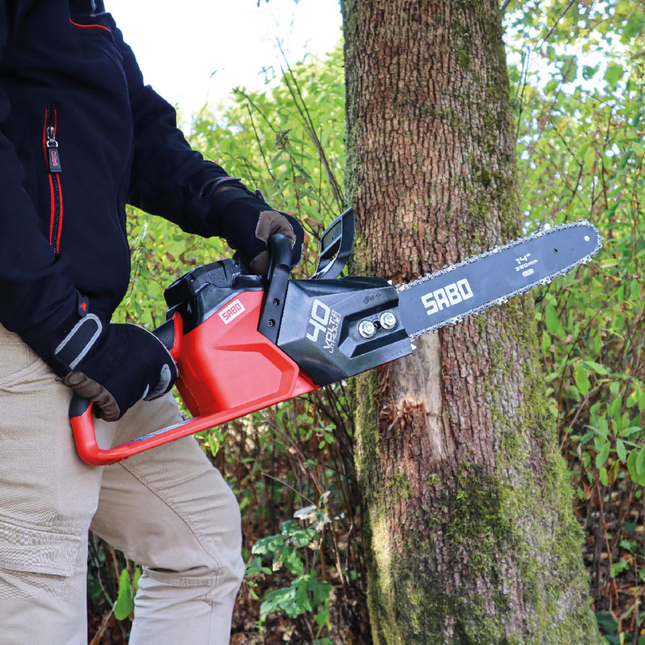 Die neue SABO Akku-Kettensäge CS-25 aus dem SABO ComfortLine-Akku-System. Die CS-25 Kettensäge wird durch einen bürstenlosen Gleichstrommotor angetrieben und kann wahlweise mit 25 cm oder 35 cm langem Schwert ausgestattet werden. Die hochwertige Kettensäge liegt mit ihren 3,8 kg leicht in der Hand und ist mit demselben starken 40V Akku aus dem SABO Akku-System kompatibel, wahlweise mit 4Ah oder 6Ah erhältlich.