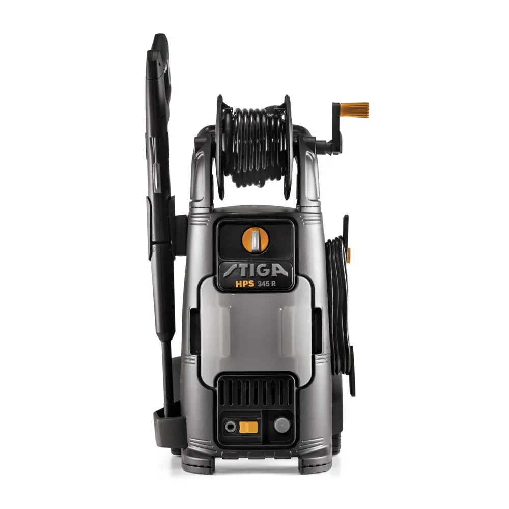 Der Hochdruckreiniger HPS 345 R hat einen Induktions-Motor mit 2100 Watt Leistung und kann einen maximalen Druck von 145 bar aufbringen. Die maximale Fördermenge beträgt 450 Liter, wobei das Pumpsystem aus einem Taumelscheibenmotor besteht und die Pumpe aus Aluminium gefertigt ist. Das Gerät enthält eine Schlauchtrommel und einen armierten Schlauch. Die Reinigungsaufnahme lässt sich mit einem Schaumsprüher bewältigen und der Handgriff ist teleskopierbar und aus Aluminium gefertigt.