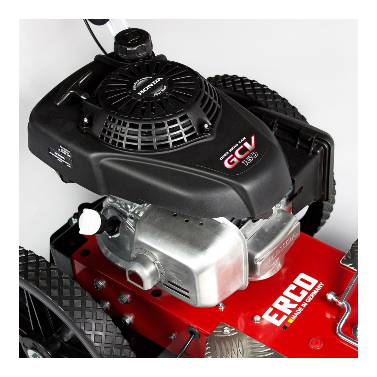 Mit der Wildkrautbürste von ERCO können zuverlässig Bordsteinkanten, oder befestigte Flächen von Unkraut und sonstigem Unrat gesäubert werden - ganz ohne Verwendung von chemischen Zusätzen oder Durchführung einer thermischen Behandlung. Die Bürste verfügt über 6 Drahtzöpfe sowie ein Schnellwechselsystem, bei dem kein Schrauben erforderlich ist. Für das Arbeiten entlang von Kanten kann die Bürste beidseitig geschwenkt werden. Der Qualitätsmotor von Honda ist besonders leise und langlebig. Um ein einfaches Verladen zu gewährleisten verfügt die Wildkrautbürste über einen Transportgriff. Für die Wildkrautentfernung auf besonders empfindlichen Oberflächen ist optional eine Rilsan Kunststoffbürste erhältlich.